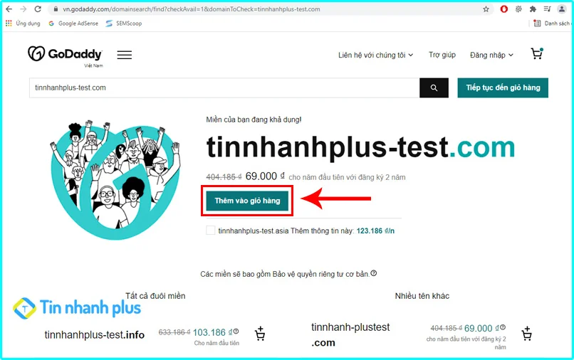 Sau khi đã tìm được tên miền mà mình muốn mua, bạn hãy tiến hành đăng nhập, hoặc tạo một tài khoản Godaddy mới để tiến hành thanh toán mua tên miền.